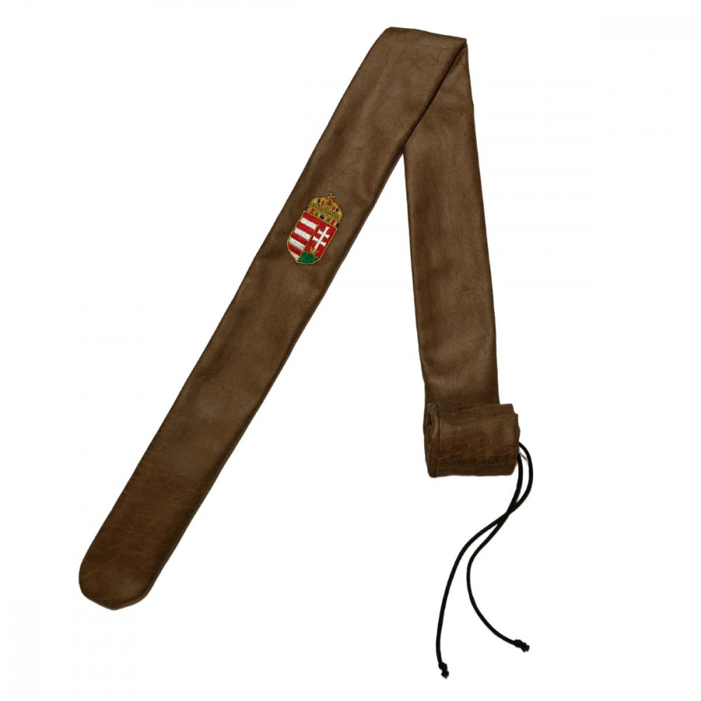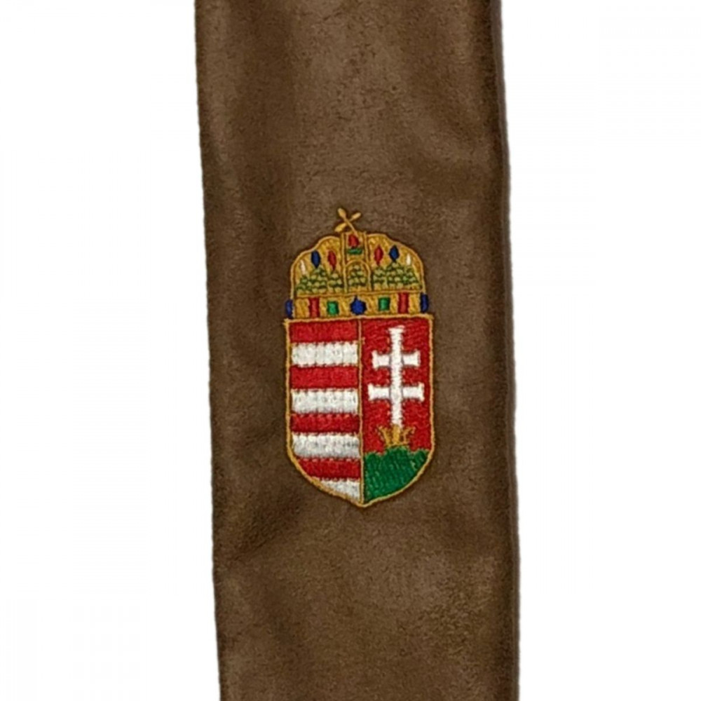 Bőrből készült íjzsák, belehímzett nemzeti címerünkkel díszítve.