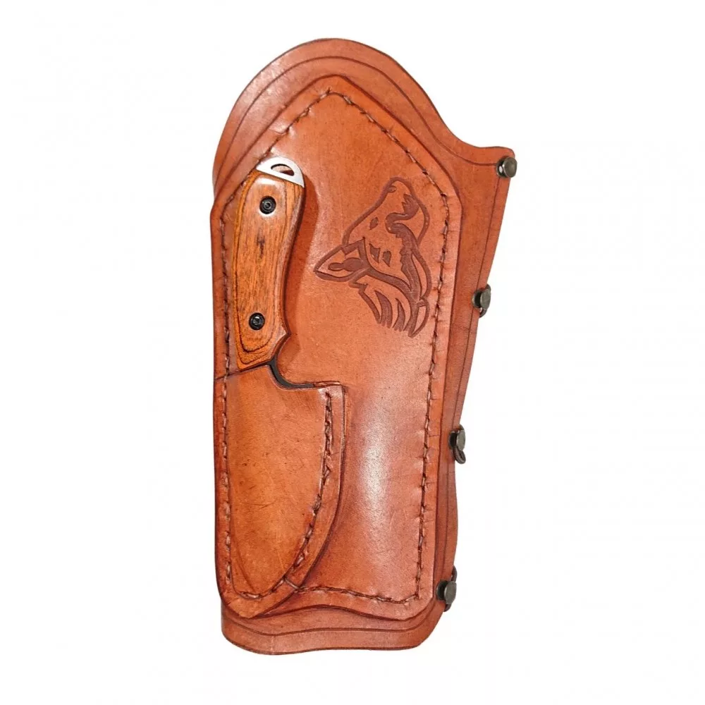 A Váci bőrműves tárgyak jellegzetes rozsdabarna árnyalatában. Vésett mintával van díszítve. Záródása pánt és kapcsok segítségével történik. Bősége szabályozható. Íjászberkekben ki ne találkozott volna már azzal a „nagyszerű” érzéssel, amikor odacsap az ideg az alkarjára. Egy nagyobb erejű íj használata esetén az ideg sebessége a lövés pillanatában akár 150-200km/óra is lehet. Ez bizony, ha rácsap az alkarunkra, nagyon tud fájni. Az ideg-alkar „randevúkért” a tartáshiba a felelős. Erről vagy leszokik az íjász, vagy alkarvédőt vásárol…